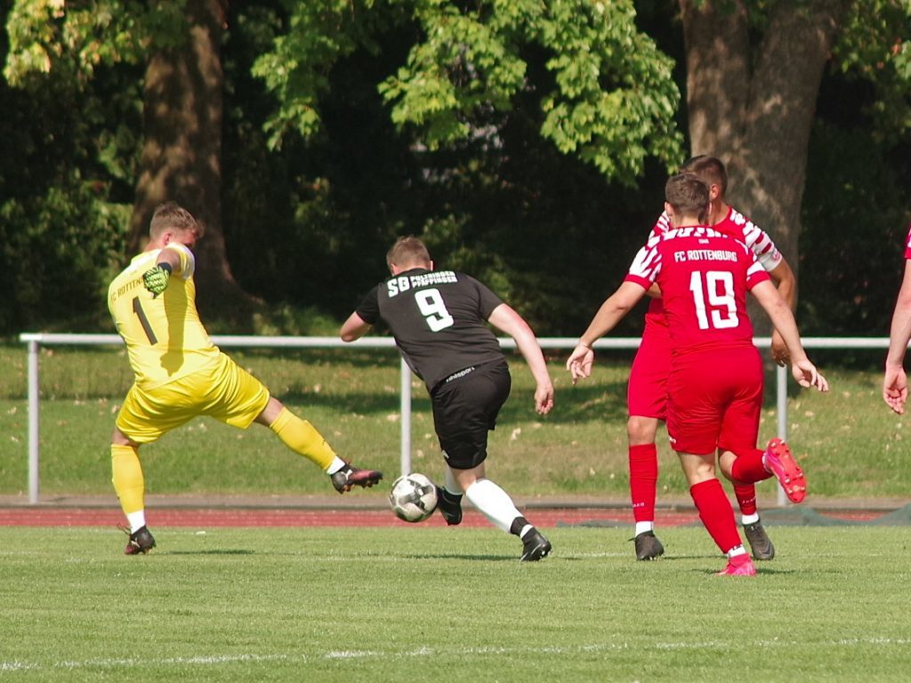Fast der Lucky Punch kurz vor Schluß: Florian Remmler scheitert aus Nahdistanz am Rottenburger Keeper Philipp Abrosimov
