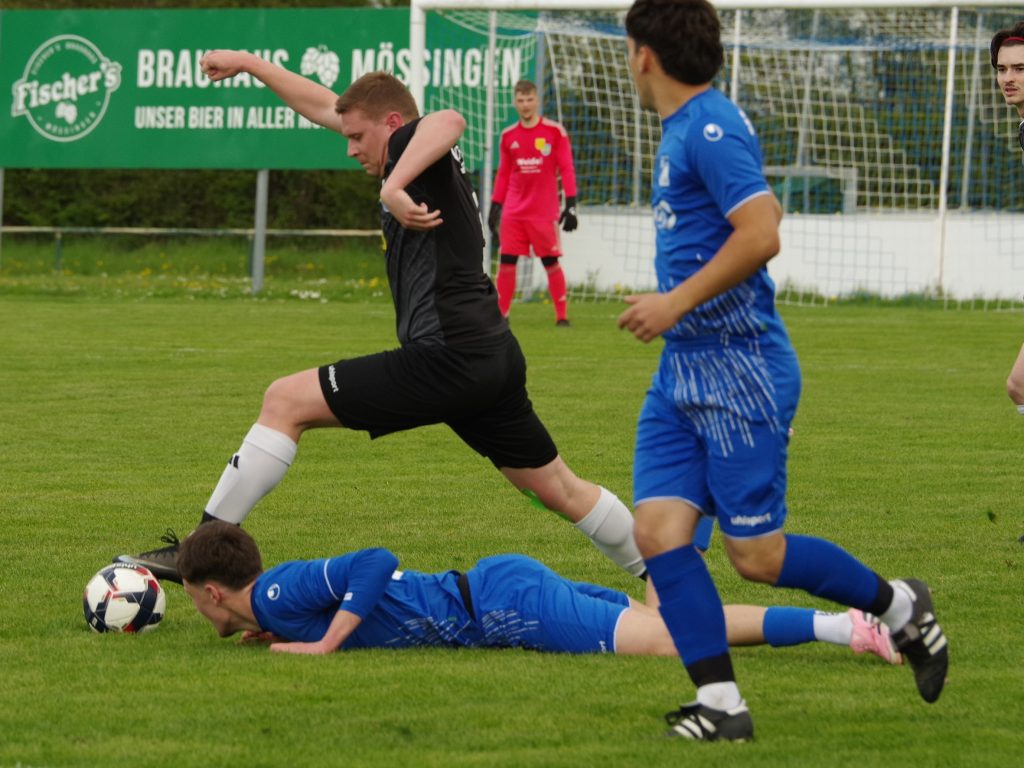 Mössingen bleibt ein schwieriges Pflaster für uns. Wir erwischten einen denkbar schlechten Start: Spielmacher Demir Deliu schickte Mansour Yildiz ins Dribbling, der unsere Abwehr mit einem Solo vernaschte und zur frühen 1:0-Führung der Gastgeber traf (7.). Mit Wut im Bauch spielte Innenverteidiger Malte Stauß einen Traumpass direkt in den Lauf von Alex Norz, der aus Nahdistanz nur knapp scheiterte (13.). Mössingen war heute einfach gedankenschneller und abschlußstärker: Wiederum kam Mansour Yildiz über die linke Seite vor unser Tor und erhöhte mit einem Schuss ins kurze Eck auf 2:0 – da war gerade eine Viertelstunde gespielt. Mike Kittel versuchte es danach aus 20m mit der Brechstange (23.), Fabian Grammer vergab nach Vorlage von Philip Baur aus Nahdistanz (32.). Nichts wollte uns gelingen – und dann kam auch noch Pech dazu: Kurz vor der Halbzeit lief der aus der eigenen Hälfte gestartete Alex Norz frei auf das Mössinger Tor zu, Schiedsrichter Philipp Schneemann entschied jedoch auf Abseits (45.+4). Auch nach dem Pausentee waren die Gastgeber trotz unseres Dreifach-Wechsels spritziger und technisch stärker: Mit einem feinen Solo zum vorentscheidenden 3:0 läutete Florentin Wagner seinen lupenreinen Hattrick ein – für uns zum denkbar schlechtesten Zeitpunkt (46.). Dennoch gaben wir nicht auf und hätten bei einem Schuss von Lukas Hartmann nach Assist von Florian Remmler nochmal zurückkommen können (49.), aber die SGM Mössingen/Belsen ließ nichts anbrennen. Unser Keeper Tim Schmidt konnte zwar einen Schuss von Khalil Mansour noch parieren, war aber beim Nachschuss von Florentin Wagner zum 4:0 machtlos (54.). Zumindest gelang Jesse Lechner mit dem „Tor des Tages“ noch der Ehrentreffer: Sein Strahl aus 20m zum 4:1 landete sehenswert im rechten Kreuzeck (75.). Das war jedoch nur ein schwacher Trost, denn Florentin Wagner traf kurz vor Schluss mit einem Schlenzer noch zum 5:1-Endstand (85.). Die Gastgeber waren uns in allen Belangen überlegen und haben völlig verdient gewonnen. Wir sind nach 9 ungeschlagenen Partien vorerst wieder auf den Boden der Tatsachen zurückgeholt worden, aber die Saison ist noch lang und bietet durchaus Chancen, nochmal oben anzugreifen.
