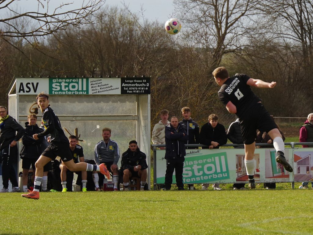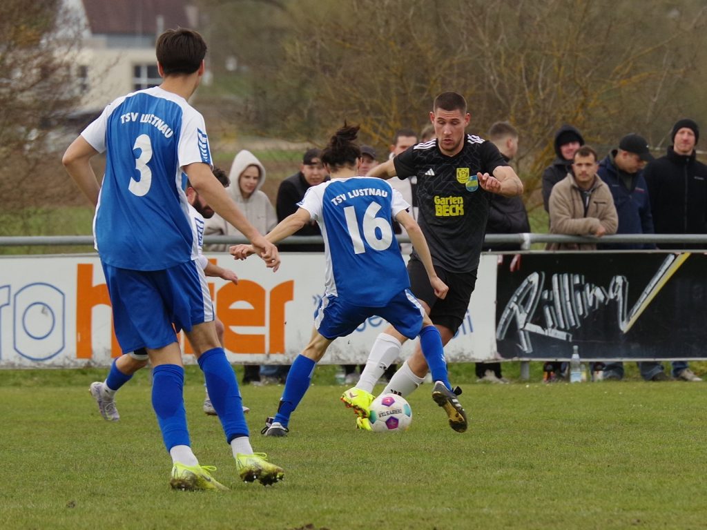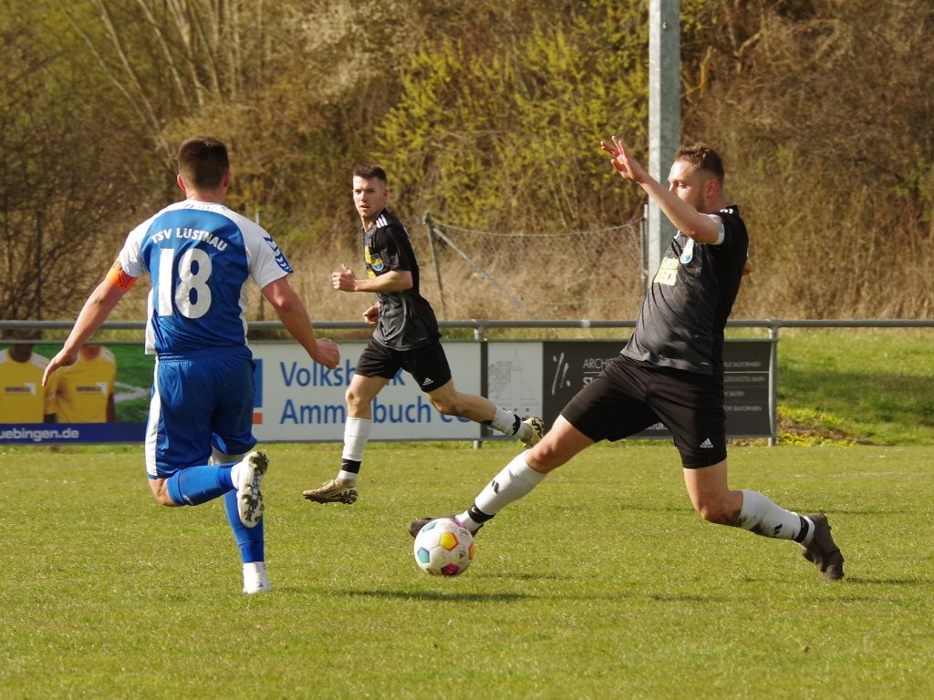 Wir entwickeln uns immer mehr zu einem echten Angstgegner für den TSV Lustnau. Nachdem wir bereits das Hinspiel beim heißen Aufstiegsanwärter gewonnen hatten, fuhren wir auch vor heimischer Kulisse nach einer unbändigen Willensleistung die 3 Punkte ein – und das war ein besonders wichtiger Sieg! Gegen den Tabellenzweiten war von Beginn an höchste Konzentration gefordert – und ein gutes Auge für die Situation: Spieler-Trainer Fabian Grammer spritzte schon nach 5 Minuten in einen zu lässig gespielten Ball aus der Lustnauer Abwehr und legte das Leder rechts unten zur frühen 1:0-Führung in die Maschen – ein Auftakt nach Maß! Die Gäste kamen mit Wut im Bauch zu ihrer ersten Chance: Nico Rinck zog aus halbrechter Position wuchtig ab, die Kugel landete rechts neben unserem Kasten (7.). Wir mussten unbedingt die wichtigen Zweikämpfe gewinnen: Malte Stauß bekam Szenen-Applaus nach seiner ersten Grätsche gegen Top-Torjäger Bekai Jagne, der bereits 32 Saisontreffer auf dem Konto hat (15.). Die Partie lebte von der Intensität, echte Torchancen waren auf beiden Seiten Mangelware. Nach einer halben Stunde unterlief Constantin Diem ohne Chance auf den Ball unseren Keeper Pascal Baumgärtner, der sich beim Aufprall auf dem Rasen unglücklich an der Schulter verletzte. Für ihn kam unser Nachwuchs-Keeper Tim Schmidt in die Partie, der seine Aufgabe bravourös meisterte, beim Gegentor der Lustnauer jedoch machtlos war: Bekai Jagne war ein einziges Mal auf der Außenbahn durchgestoßen, legte mit viel Übersicht zurück auf Nico Rinck, der das Leder zum 1:1-Ausgleich unter den Querbalken hämmerte (42.). Nach dem Seitenwechsel drängten die Gäste auf die Führung und schnürten uns hinten ein: Einen Freistoß von Jannik Kienzler klärte Malte Stauß vor der Linie (48.), bevor der frei durchgestoßene Bekai Jagne vom aktuell in überragender Form spielenden Marcel Schmid im Laufduell noch gestoppt wurde (63.). Er war wegen der Gelb-Rot-Sperre von Marco Eyth in die Innenverteidigung gerückt und agierte dort gemeinsam mit Malte Stauß als unser Fels in der Brandung. Lukas Hartmann und Stefan Göhring liefen immer wieder die Lücken im Mittelfeld zu, so dass die Lustnauer ihr gefürchtetes Paßspiel nicht aufziehen konnten. Dennoch brauchten wir in dieser Phase dringend Entlastung, da wir bis dato in der 2. Halbzeit keinen einzigen Torschuss abgegeben hatten. Es waren noch 15 Minuten auf der Uhr, als wir auf Offensive umschalteten, denn Lustnau war defensiv keinesfalls sattelfest. Unser Mittelfeld-Motor Lukas Hartmann bekam die Kugel von Mike Kittel auf der rechten Außenbahn, flankte mit viel Übersicht an den Elfmeter-Punkt, wo der kurz zuvor eingewechselte Florian Remmler völlig frei zum vielumjubelten 2:1 einnetzte (75.) – Glückwunsch zum ersten Saisontreffer nach langer Verletzungspause! Die Gäste warfen jetzt alles nach vorne: Wieder war es Marcel Schmid, der nach Flanke von Onur Kececi gegen Bekai Jagne klärte (85.), bevor Tim Schmidt in der Nachspielzeit gegen Mark Knight den Sieg festhielt (90.+2). Trotz aktuell großer Verletzungssorgen haben wir uns zurück in die Partie gekämpft und nach Punkten zum TSV Lustnau aufgeschlossen.  Es war auch ein Sieg für unseren verletzten Keeper Pascal Baumgärtner, dem wir alles Gute für seine Genesung wünschen.