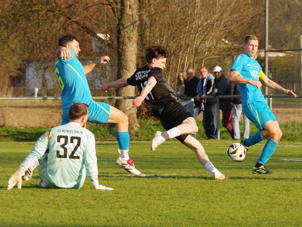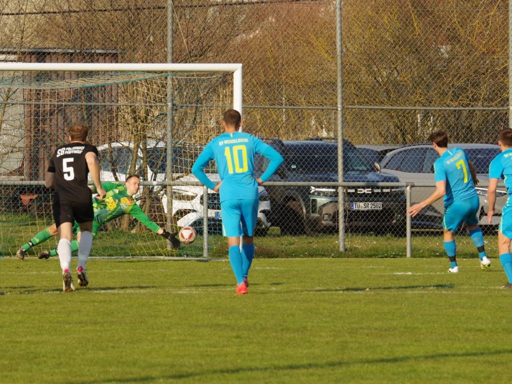Der SV Wendelsheim traf nach einem Foul an Samuel Lindner per Strafstoß zum 1:1-Ausgleich (42.)
