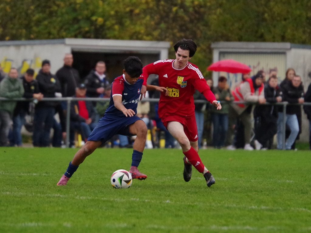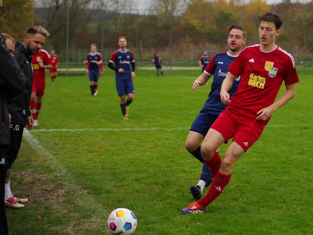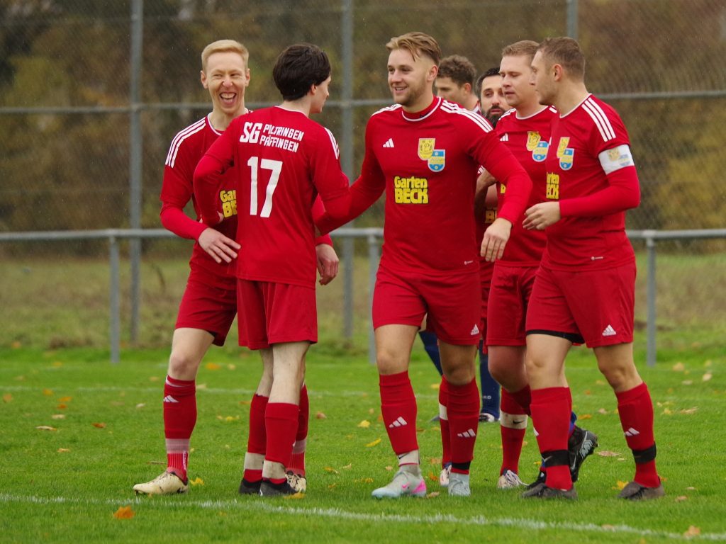 Zunächst lief für uns alles nach Plan: Ein Angriff wie aus dem Lehrbuch führte schon nach 5 Minuten zur 1:0-Führung. Mike Mozer erkämpfte im Mittelfeld den Ball, passte zu Alex Norz auf die rechte Außenbahn, dessen Flanke Alexander Beck per Kopf in die Maschen setzte. Wahrscheinlich dachten wir, dass gegen den Tabellenvorletzten alles von alleine laufen würde, denn uns fehlte danach komplett die Galligkeit in den Zweikämpfen, so dass BFSO besser in Spiel kam. Benjamin Narr flankte, Nicolas Zettel ließ durch, so dass Marius Ulmer im Zentrum völlig frei zum Abschluss kam, aber knapp verzog (12.). Auch nach diesem Warnschuss wachten wir nicht auf. Markus Bauer steckte auf Emil Hartmann durch, der unseren Keeper Pascal Baumgärtner zu einem Klasse-Reflex zwang, bevor Jan Rebmann im Nachschuss das leere Tor nicht traf (22.). Der Ausgleich lag förmlich in der Luft und fiel dann auch. Max Beuter setzte sich auf der linken Außenbahn durch, passte in den Lauf von Benjamin Narr, der trocken unten links zum 1:1-Ausgleich abschloss (27.). Bloß gut, dass unser Goalgetter Alex Norz praktisch im Gegenzug für die erneute Führung sorgte, als er aus 20m einfach mal abzog. BFSO-Keeper Dominik Saile war zwar noch mit den Fingerspitzen dran, aber die Kugel sprang vom Innenpfosten ins Tor (28.). Es blieb im Regen von Pfäffingen weiter eine zähe Angelegenheit, aber die Halbzeitansprache von Jörg Eyth und Fabian Grammer zeigte Wirkung. Nach dem Seitenwechsel kamen unsere Bälle endlich an, wir machten das Spiel breit und wurden offensiv gefährlicher. Ein weiter Abschlag von Pascal Baumgärtner landete links bei Alex Norz, der mit viel Übersicht auf Jesse Lechner zurücklegte. Dessen Schuss aus 25m war lange in der Luft und senkte sich hinter Dominik Saile zum 3:1 hinter die Linie (53.). Nur 5 Minuten später dann die Vorentscheidung: Stefan Göhring passte das Leder aus dem Mittelfeld in den Lauf von Marcel Schmid, der auf dem linken Flügel aus spitzem Winkel zum 4:1 traf (58.) – jetzt gelang uns plötzlich alles! Der Torschütze sammelte wenig später noch einen Assist mit seinem Pass auf Alex Norz, der mit seinem Doppelpack zum 5:1 für den Endstand sorgte (62.). Nach diesen furiosen 10 Minuten spielten wir die Partie seriös zu Ende. Der eingewechselte Felix Beeh war nah an seinem Premierentreffer, als er einen Flugkopfball nach Flanke von Jesse Lechner knapp über den Querbalken setzte (80.). Am Ende fragte sich unser Anhang, warum wir nicht von Anfang an so gespielt haben, aber letztlich war es aufgrund der deutlichen Leistungssteigerung in der 2. Hälfte ein verdienter Heimsieg, mit dem wir den 3. Tabellenplatz verteidigen.