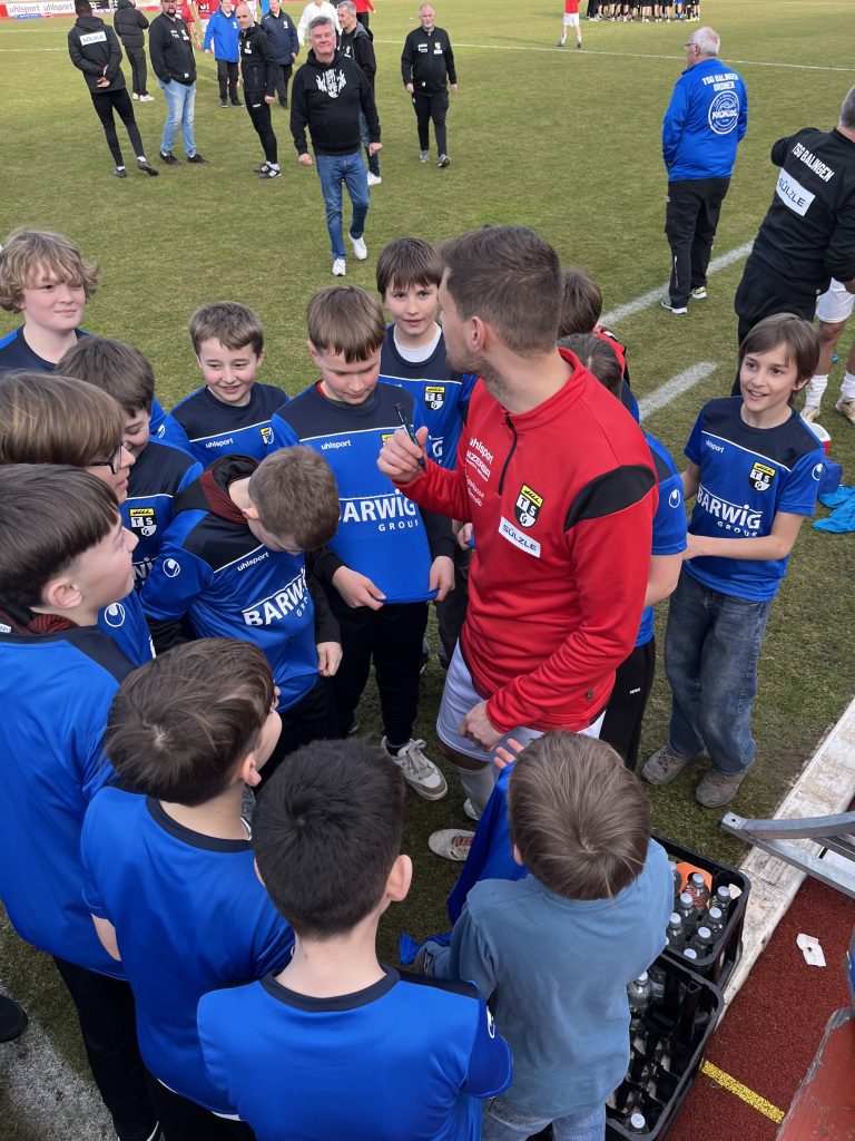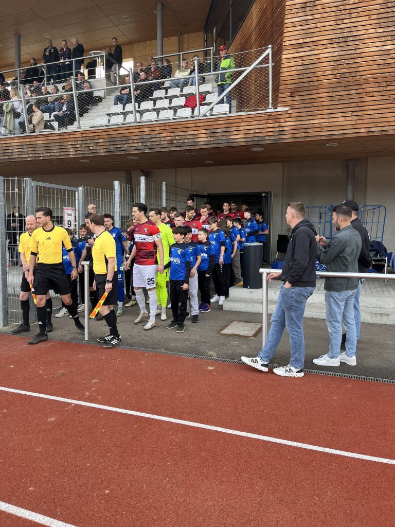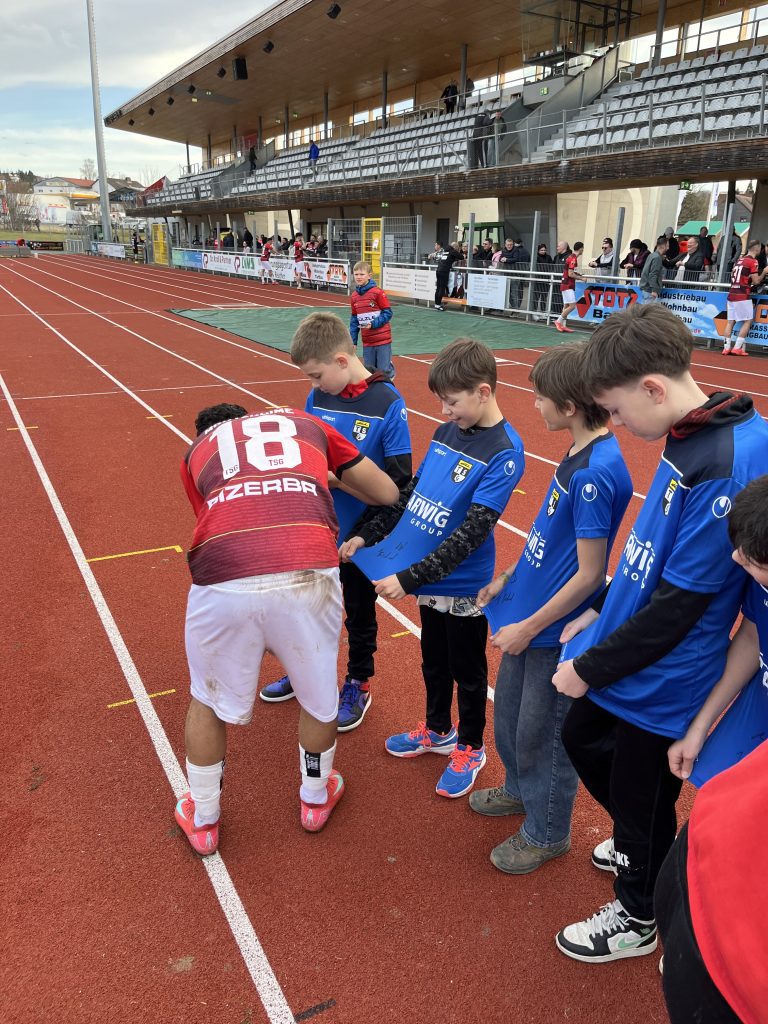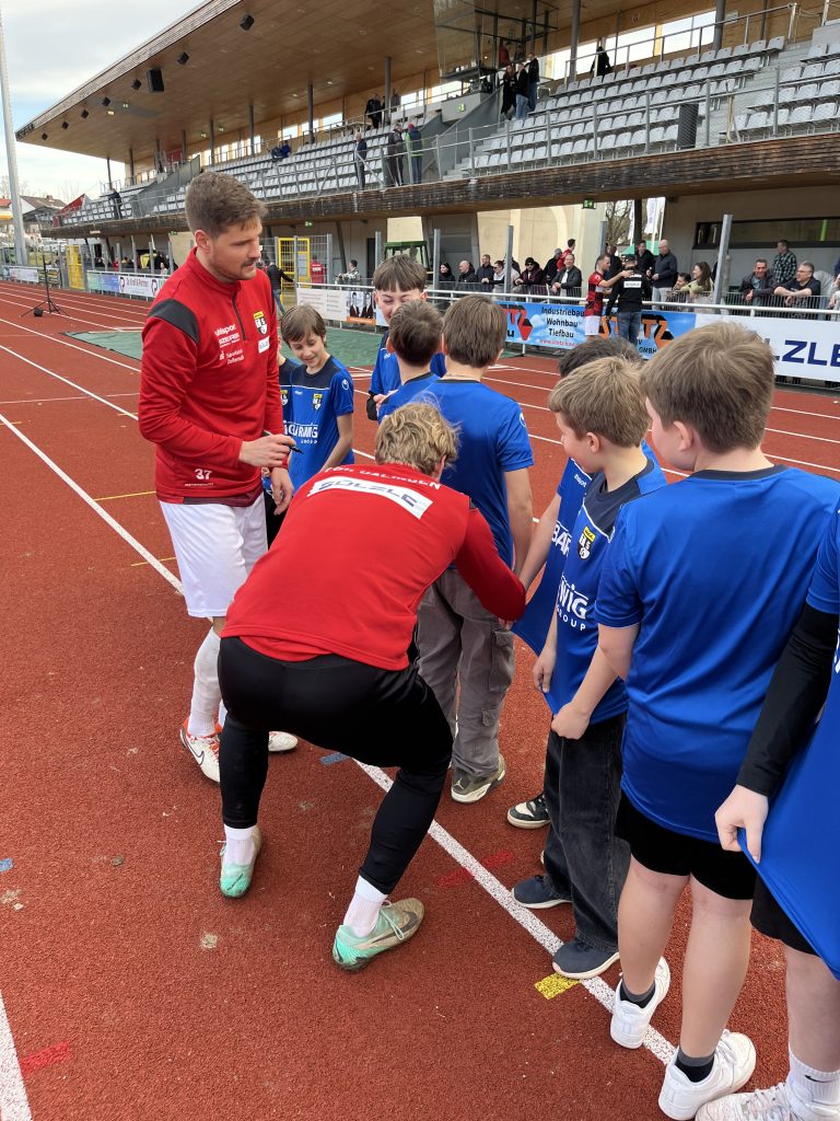 Am 22.03.2025 folgte unsere D-Jugend der Einladung der TSG Balingen zum Oberligaspiel gegen die TSG Backnang. Unsere Spieler durften gemeinsam mit den Spielern einlaufen und während des Spiels als Balljungs mitwirken. Als besonderes Andenken erhielten sie von der TSG Balingen ein Fan-Shirt, das sie mit nach Hause nehmen durften. In der Halbzeitpause gab es dann eine wohlverdiente Stärkung mit Stadionwurst, Käsebrötchen und erfrischenden Getränken.