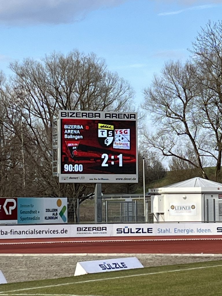 Die Partie endete mit einem knappen 2:1-Sieg für die TSG Balingen, die damit ihren 2. Platz in der Oberliga Baden-Württemberg weiter festigte.