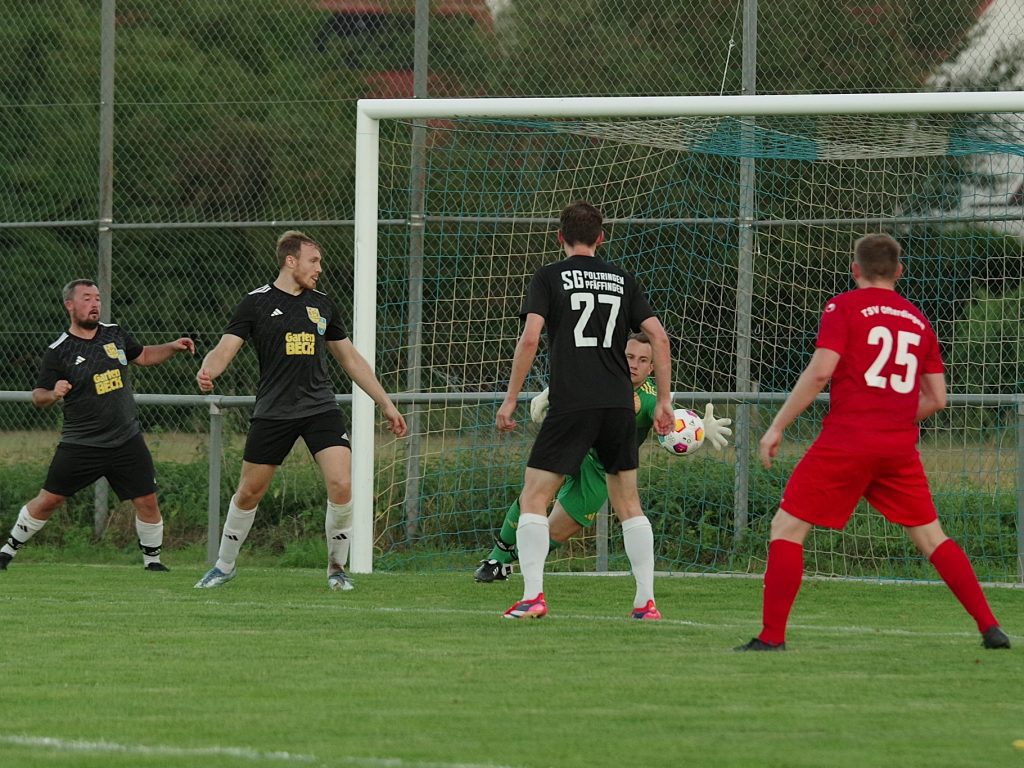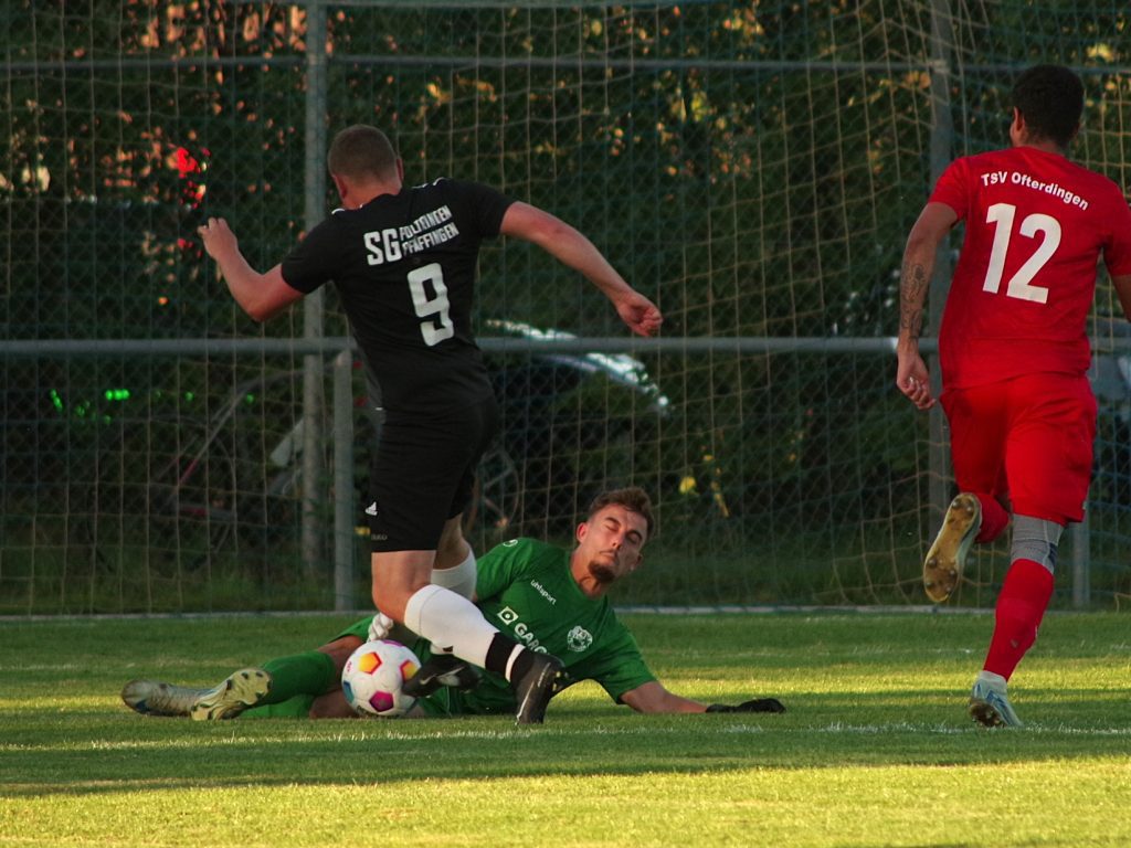 Nach dem Seitenwechsel wollte Ofterdingen die Partie entscheiden, doch unsere Abwehr und der glänzend aufgelegte Torwart Pascal Baumgärtner hielten dagegen. Immer wieder setzten wir Nadelstiche nach vorne. In der 50. Minute hätte Fiore Guido nach einer Traumflanke von Marcel Schmid beinahe den Ausgleich erzielt – akrobatisch gemacht, aber leider knapp vorbei. Kurz darauf wurde Alex Norz im Strafraum vom gegnerischen Torhüter zu Fall gebracht. Den fälligen Elfmeter verwandelte Lukas Hartmann eiskalt zum 1:1.