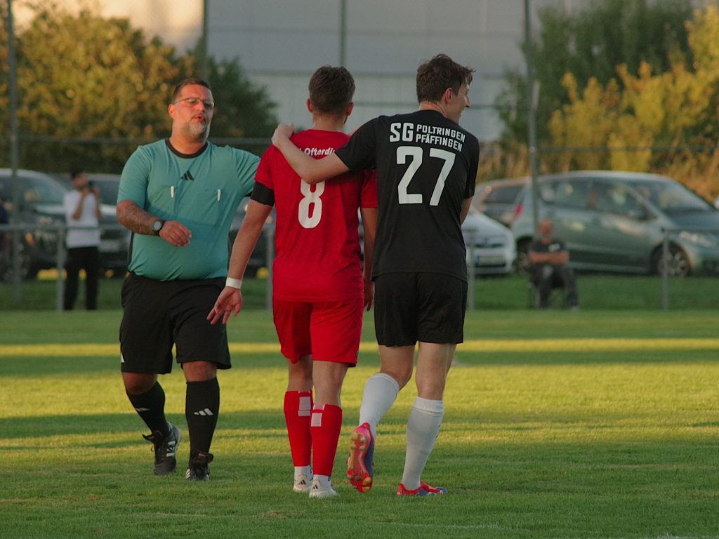 Jetzt entwickelte sich ein echtes Pokalspiel: Ofterdingen drückte, wir kämpften, das Publikum fieberte mit. In der 82. Minute die Entscheidung: Über mehrere kurze Ballstafetten von Lukas Hartmann und Marcel Schmid landete der Ball plötzlich im Netz – 2:1 für unsere SG!
