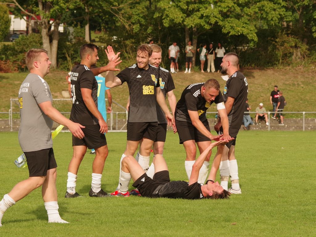 Der entscheidende Treffer fiel schon früh in der Partie: Glückwünsche an Marcel Schmid (2.)