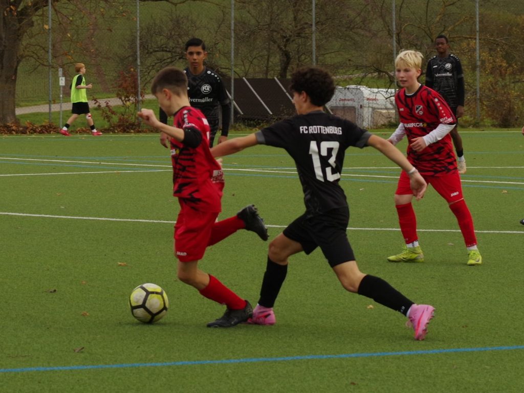 Das Spitzenspiel unserer C1 gegen den Tabellenzweiten FC Rottenburg war bei besten äußeren Bedingungen in Poltringen gut besucht. Die Gäste kamen mit dem Kunstrasenplatz zunächst besser zurecht und waren uns spielerisch überlegen. Angriff über Angriff rollte auf unsere Abwehr zu, die Schwerstarbeit zu verrichten hatte. Die kämpferische Einstellung stimmte, aber wir kamen kaum zu Entlastungsangriffen, so dass wir folgerichtig in Rückstand gerieten. Bis zum Halbzeitpfiff lagen wir bereits mit 0:2 hinten, wobei die Gäste eine durchaus robuste Gangart an den Tag legten. Doch so leicht ließen wir uns den Schneid nicht abkaufen. Nach dem Seitenwechsel steigerten wir uns deutlich und wurden belohnt. Nach einem schön geschlenzten Eckball von Finn Aberle nickte Alexej Kauz zum 1:2-Anschlußtreffer ein (42.). Plötzlich waren wir die dominierende Mannschaft und hätten wenig später nachlegen können. Nach schöner Flanke von Eli Schaible stand Noah Weber am 5m-Raum völlig frei, aber sein Schuß strich links über den Kasten (47.) – das hätte der Ausgleich sein können! Es war jetzt ein offener Schlagabtausch, die Partie wogte hin und her. Das glücklichere Ende war auf Seiten der Gäste: Mit einem Pass in die Tiefe hebelten die Rottenburger unsere Abwehr aus und erzielten das 1:3 – allerdings aus stark abseitsverdächtiger Position. Damit war der Stecker gezogen. Wir versuchten alles, waren aber nicht zwingend genug im Abschluss. Die Rottenburger übernehmen nach diesem Auswärtssieg die Tabellenführung in der Kreisstaffel 1, aber es stehen noch 2 Partien in der Quali-Runde auf dem Programm. Noch ist also nichts entschieden. Kopf hoch, Jungs – und nächste Woche wieder alles geben!