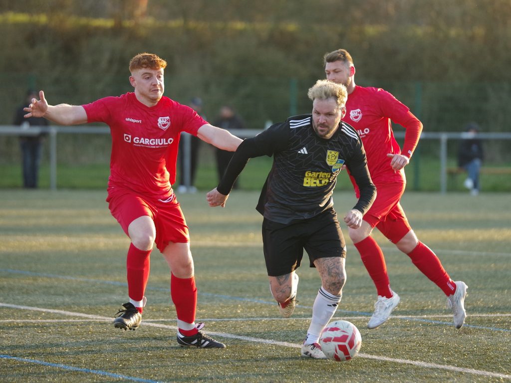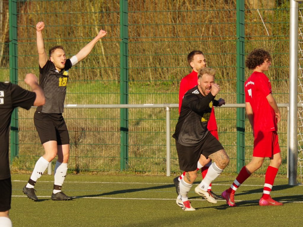 Kurz vor der Pause verkürzt Marcel Eiband zum 1:3 für die Gastgeber (42.)